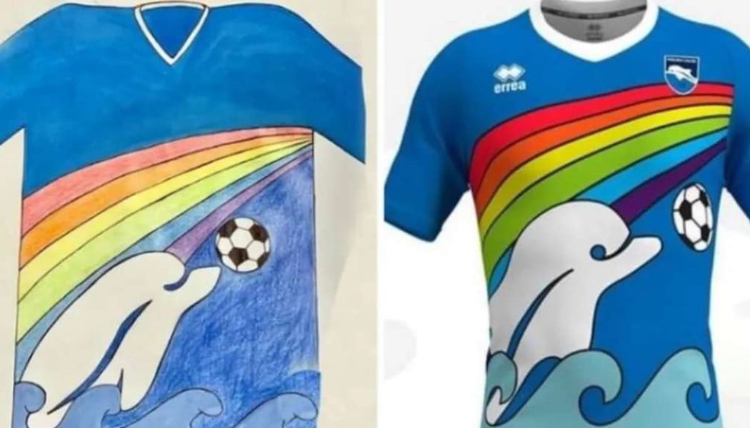 Το τέλειο flashback στην φοβερή φανέλα της Πεκάρα. Της πιο διάσημης ομάδας στον κόσμο που χρησιμοποιεί το δελφίνι στο λογότυπό της. Η ξεχωριστή έκδοση εμφανίσεων, πριν από 5 χρόνια, ήρθε μέσα από τα χέρια ενός 6χρονου φίλου της ομάδας, του Λουίτζι Ντ' Αγκοστίνο.