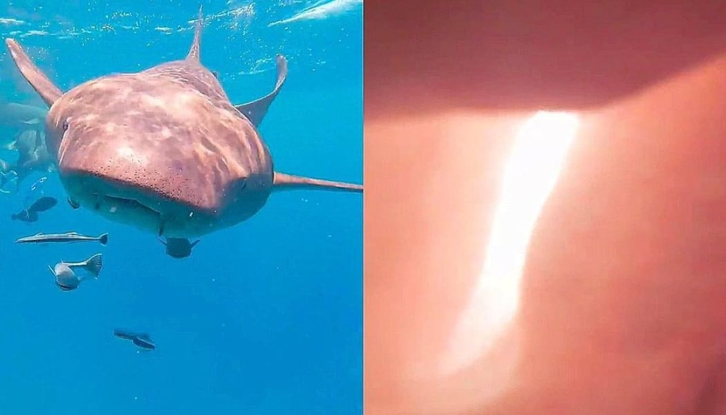 Πρόκειται για καρχαρία (4-5 μέτρων) και αμέσως έγινε θέμα συζήτησης και πολλοί ήταν εκείνοι που τράβηξαν βίντεο.