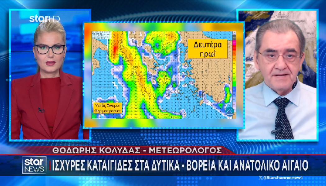 Θυελλώδεις νότιοι άνεμοι θα πνέουν σήμερα Κυριακή (25-01-2026) στο Ιόνιο και αύριο Δευτέρα (26-01-2026) στο Αιγαίο. Διαβάστε αναλυτικά και δείτε την πρόβλεψη του Θοδωρή Κολυδά στο Star.gr