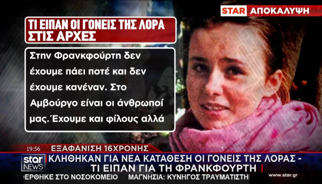 Άφαντη παραμένει η Λόρα, η οποία εξαφανίστηκε στις 8 Ιανουαρίου από το σπίτι της στην Πάτρα και σύμφωνα με επίσημα στοιχεία βρίσκεται πλέον στη Γερμανία, αλλά κανείς δεν γνωρίζει πού.