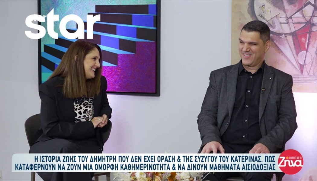 Μια ιστορία γεμάτη φως, χιούμορ και αστείρευτη δύναμη ψυχής παρουσιάστηκε στην εκπομπή του Star, με πρωταγωνιστές τον Δημήτρη, έναν σεφ με ολική απώλεια όρασης, και τη σύζυγό του Κατερίνα. Το ζευγάρι μοιράστηκε τις πτυχές μιας καθημερινότητας που δεν γνωρίζει εμπόδια, στέλνοντας ένα ηχηρό μήνυμα αισιοδοξίας.