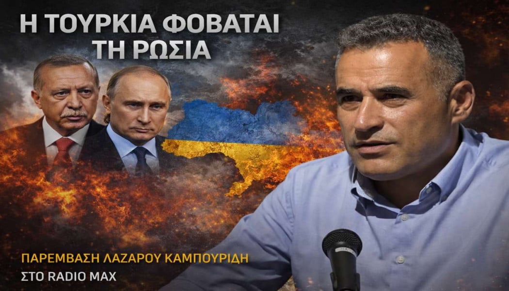 Σε μια αποκαλυπτική παρέμβαση στον ραδιοφωνικό σταθμό Radio Max, ο διεθνολόγος και αναλυτής Λάζαρος Καμπουρίδης σκιαγράφησε με καθαρούς όρους τη σημερινή στάση της Τουρκίας, υποστηρίζοντας ότι ο Ρετζέπ Ταγίπ Ερντογάν βρίσκεται σε φάση έντονης γεωπολιτικής αμηχανίας και φόβου απέναντι στη Ρωσία.