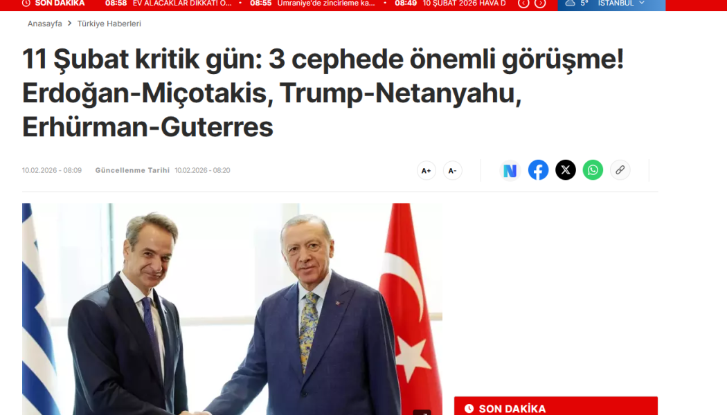 Πώς βλέπει το τουρκικός Τύπος τη συνάντηση Ερντογάν–Μητσοτάκη και τις εξελίξεις στις ελληνοτουρκικές σχέσεις.