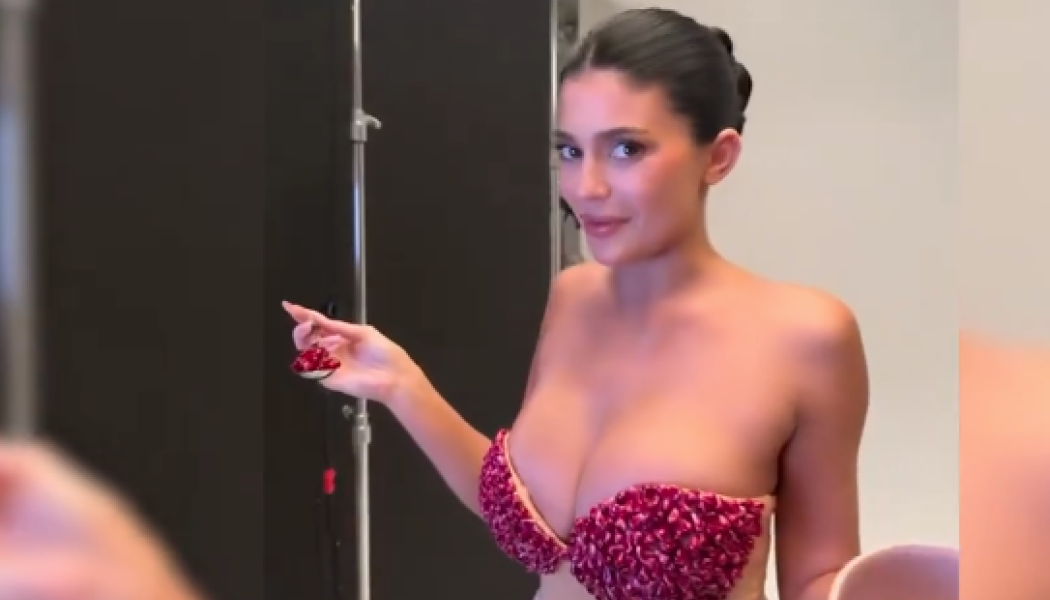 Η γνωστή επιχειρηματίας και influencer επέλεξε ένα εντυπωσιακό και ασυνήθιστο look για να προωθήσει το νέο lip butter της Kylie Cosmetics, εμφανιζόμενη με ένα σουτιέν καλυμμένο από ρόδια.