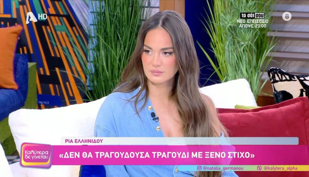 Την πρώτη της τηλεοπτική εμφάνιση είχε κάνει η Ρία Ελληνίδου τον Ιούνιο του 2014, στην εκπομπή «Στην υγεία μας ρε παιδιά».