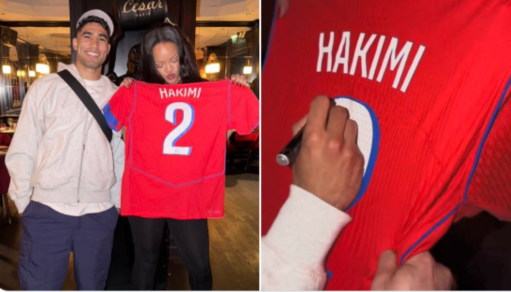 L’international marocain Achraf Hakimi, joueur du Paris Saint-Germain, a offert son maillot signé à la star mondiale Rihanna, à l’occasion de leur rencontre à Paris.
