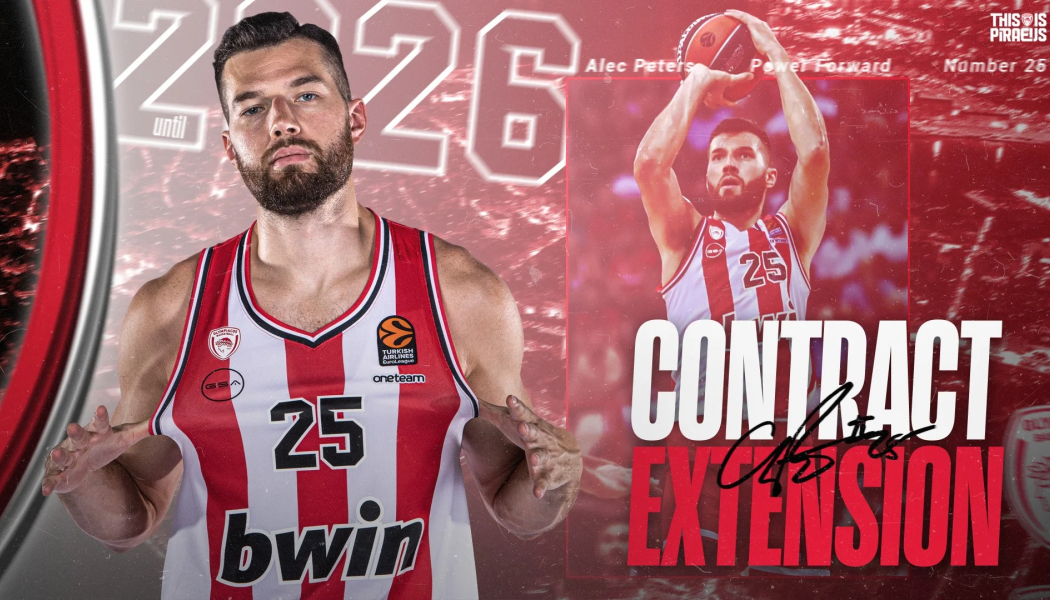 "Η ΚΑΕ ΟΛΥΜΠΙΑΚΟΣ ανακοινώνει την επέκταση της συνεργασίας της με τον Άλεκ Πίτερς έως το 2026.