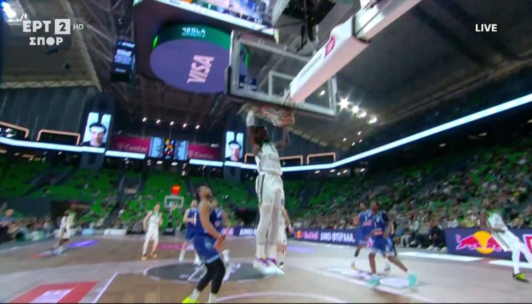 Λίγο αργότερα ο Γάλλος σέντερ τα έκανε όλα μόνος, αφού αρχικά έκλεψε την μπάλα και έπειτα κάρφωσε ανάποδα στο αντίπαλο καλάθι.
