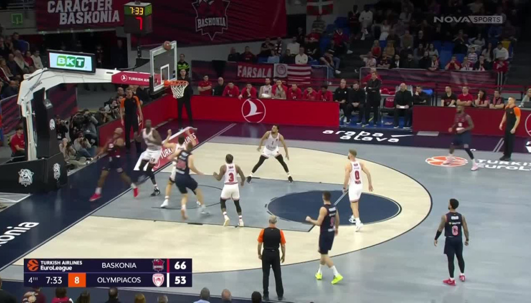 Το τρελό καλάθι που πέτυχε ο Νιγηριανός άσος της Μπασκόνια κόντρα στον Ολυμπιακό και μάλιστα υπό το μαρκάρισμα του Μουσταφά Φαλ.
