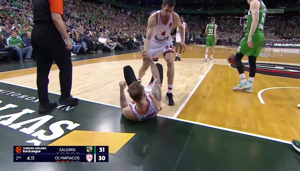 Στα μισά του δεύτερου δεκαλέπτου ο Ιγκνας Μπραζντέικις έβαλε τον Ολυμπιακό μπροστά στο σκορ με ένα ακροβατικό λέι απ και πήρε και το φάουλ από τον Μπιρούτις.