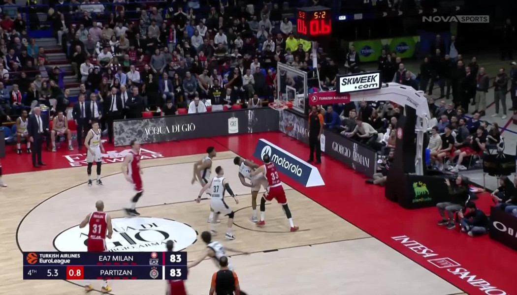 H Αρμάνι υποδέχθηκε στο Μιλάνο την Παρτίζαν για την 28η αγωνιστική της Euroleague και επικράτησε σε ματς θρίλερ με 85-83.