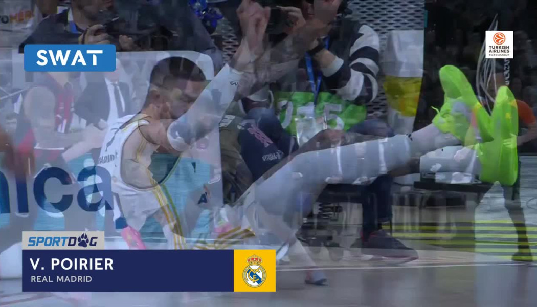 Ο Κόντι Μίλερ - ΜακΙντάιρ πήγε για ένα εντυπωσιακό κάρφωμα μπροστά στο πρόσωπο του Βενσάν Πουαριέ, αλλά ο Γάλλος σέντερ των Μαδριλένων τον φιλοδώρησε μια μια υπέροχη τάπα.
