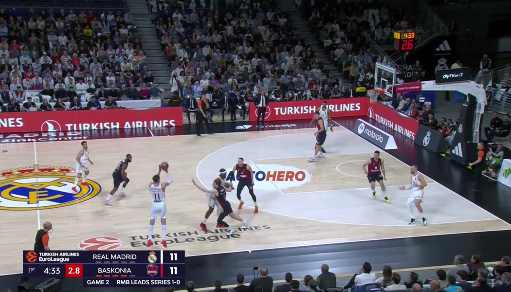 Η Ρεάλ Μαδρίτης πέρασε ένα εύκολο βράδυ απέναντι στην Μπασκόνια και ο Μάριο Χεζόνια δοκίμασε ένα τρίποντο από πολύ μακριά με τον χρόνο να τελειώνει.