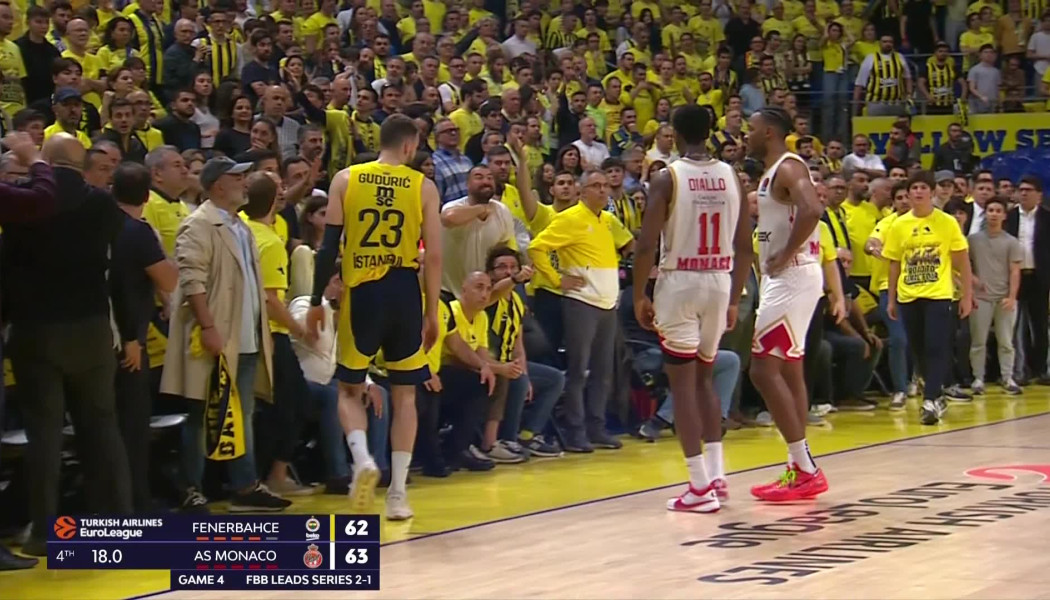 Λίγο πριν το τέλος του Game 4 στην Τουρκία, ένας οπαδός της Φενέρμπαχτσέ απειλεί τον Άλφα Ντιαλό ότι θα του κόψει τον λαιμό.