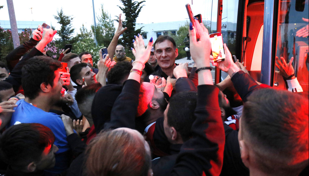 «Παιδιά χίλια ευχαριστώ που είστε τέτοια ώρα εδώ», είπε στους εκστασιασμένους φίλους της ομάδας ο Γιώργος Μπαρτζώκας.