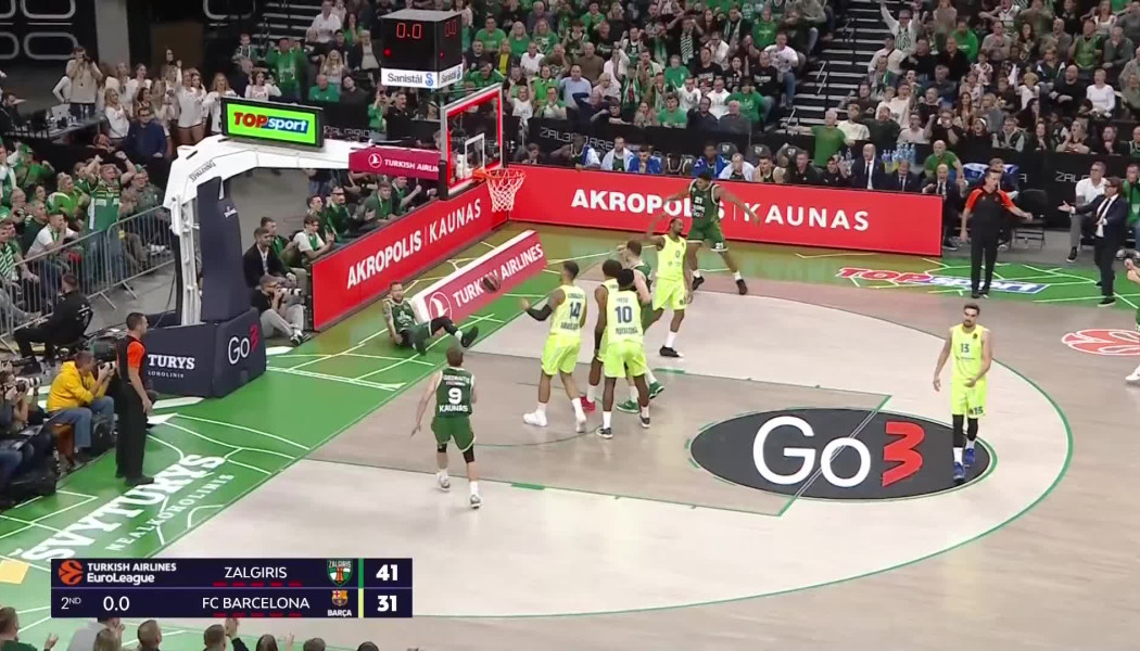 Το καλάθι του λιΜπραζντέικις στο τέλος του πρώτου μέρους, για το 43-31 της Ζάλγκιρις.