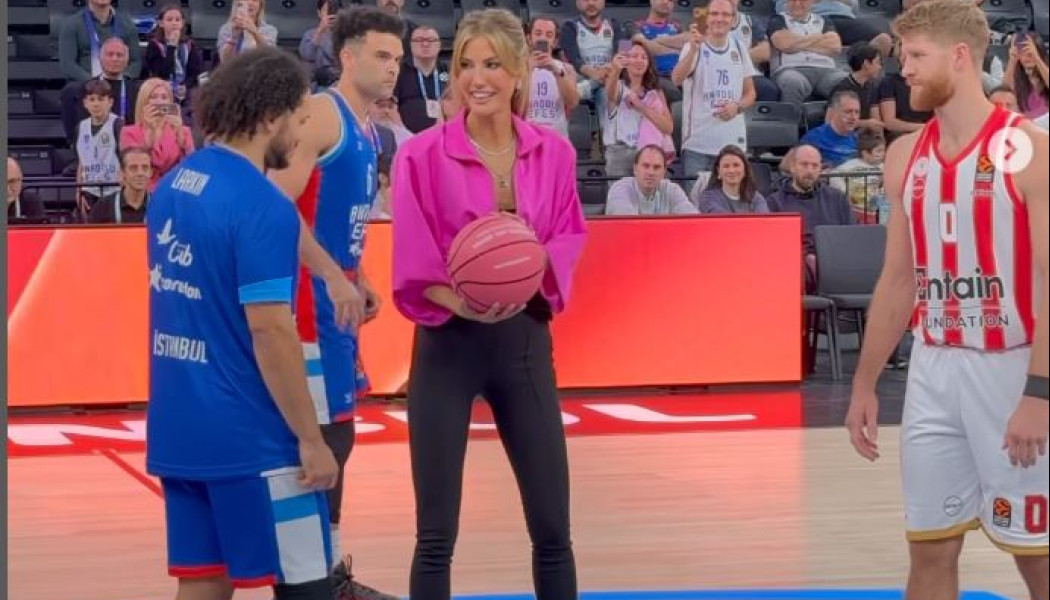 Η 45χρονη Τουρκάλα ηθοποιός και μοντέλο έκανε ένα ξεχωριστό τζάμπολ πριν την έναρξη του αγώνα της Εφές με τον Ολυμπιακό.