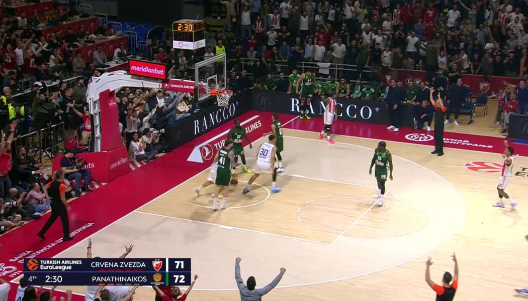 Ο πρώην γκαρντ του Ολυμπιακού και νυν του Ερυθρού Αστέρα έβαλε ένα τρίποντο και κοίταξε προς τον πράσινο πάγκο.