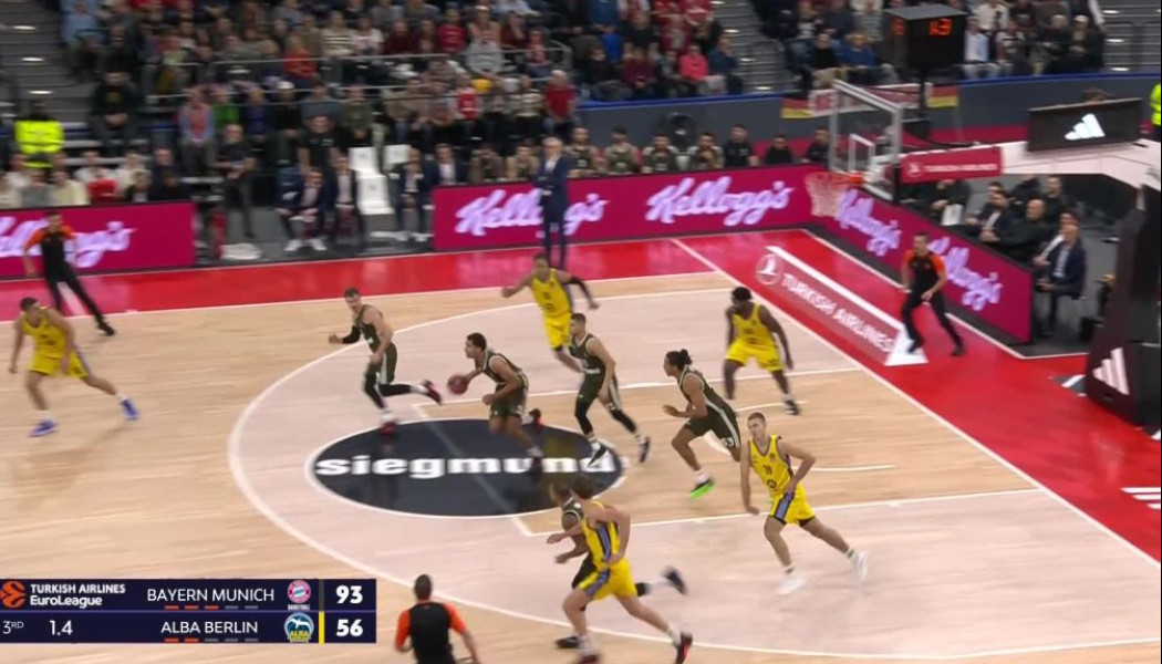 Οι Βερολινέζοι (ρεκόρ 2-8) είχαν ξανά πολλές απουσίες, ήταν και κουρασμένοι από το πρόσφατο ματς με την Αρμάνι Μιλάνο που κρίθηκε στην παράταση, με τη διαφορά να φτάνει στους 40 πόντους (96-56 στο 30’) και κάπως χαλάρωσαν οι Βαυαροί στο τέταρτο δεκάλεπτο για το τελικό +29.