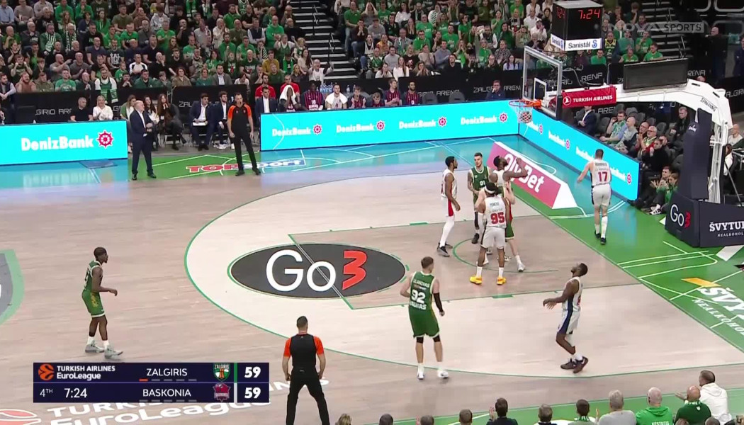 Ο Νίκος Ρογκαβόπουλος στην αναμέτρηση της Ζαλγκίρις με τη Μπασκόνια στο Κάουνας, έστειλε καταλάθος τη μπάλα στο καλάθι της ομάδας του.