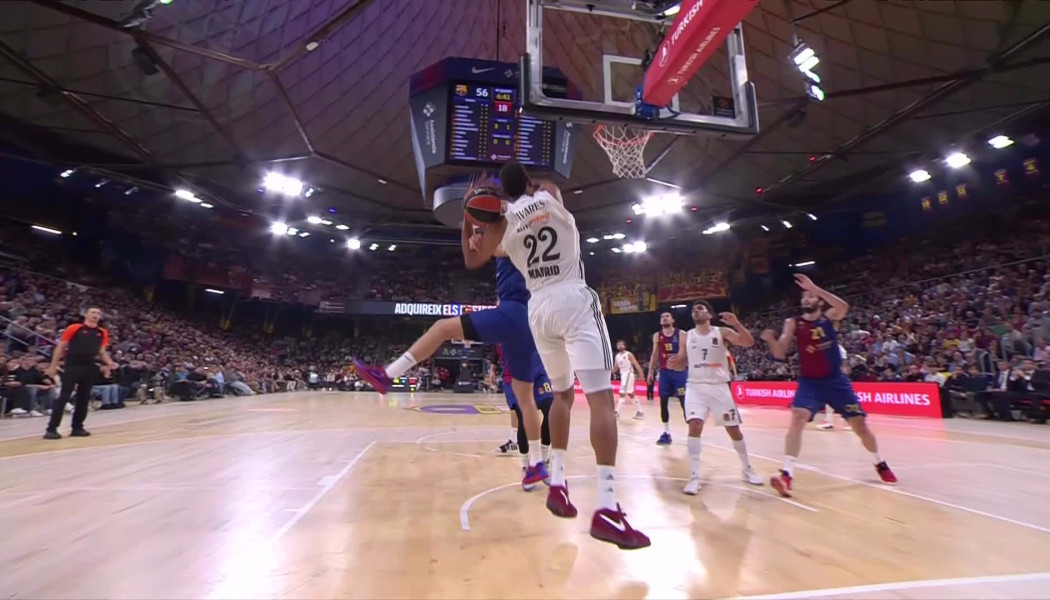 Η Ρεάλ Μαδρίτης απέδρασε από το «Παλάου Μπλαουγκράνα», επικρατώντας με 97-90 επί της Μπαρτσελόνα έπειτα από δύο παρατάσεις και ο Τζόελ Πάρρα θα έχει να θυμάται την τάπα στον Έντι Ταβέρες.