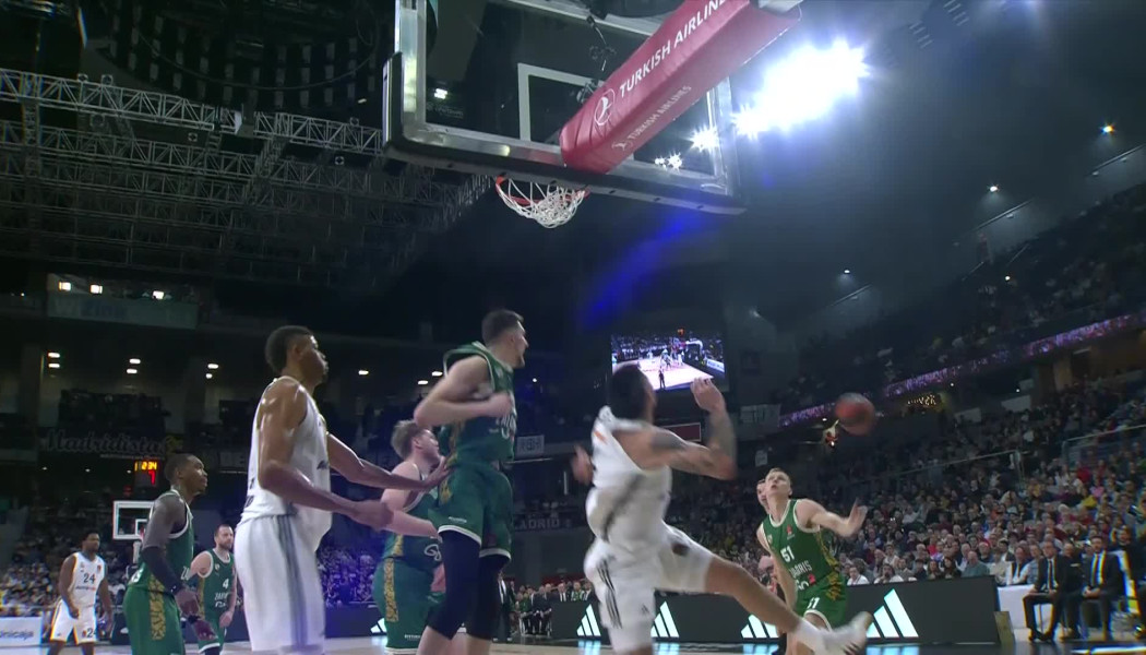 Ο Λιθουανός σέντερ της Ζαλγκίρις Κάουνας σταμάτησε με εντυπωσιακό τρόπο τον Αργεντινό φόργουορντ της Ρεάλ Μαδρίτης.