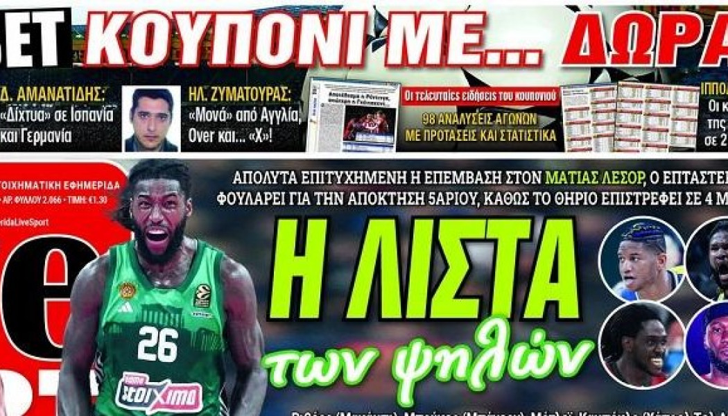 Δείτε τη σημερινή Live Sport, όπως και όλα τα υπόλοιπα αθλητικά πρωτοσέλιδα, στο βίντεο: