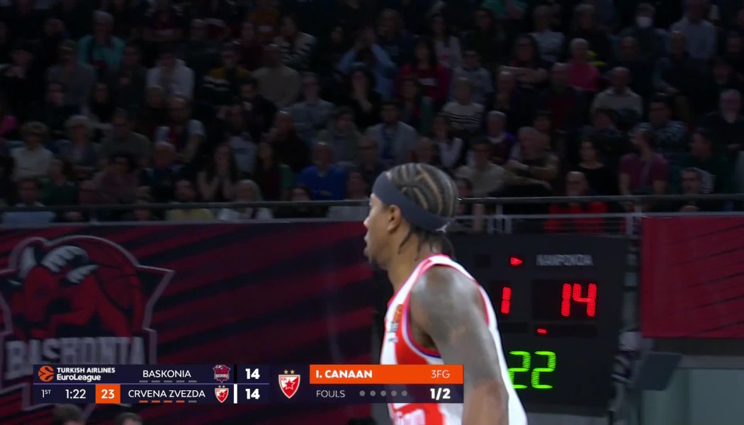 Euroleague: Eπί 7 σερί σεζόν η Μπασκόνια είχε πάντα τον τρόπο της για να παίρνει τη νίκη απέναντι στον Ερυθρό Αστέρα, όμως αυτή τη φορά οι Σέρβοι είχαν στο παρά... τέσσερα τον Αϊζάια Κάνααν, ο οποίος με ένα προσωπικό καλάθι στα 3’7’’ πριν το φινάλε, «υπέγραψε» τη νίκη για την ομάδα του με 75-73 στην «Buesa Arena» για την 19η αγωνιστική της Euroleague.