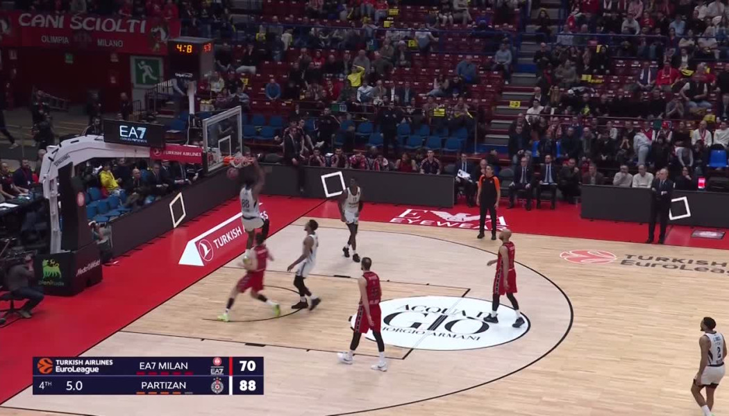 Η Παρτιζάν νίκησε την Αρμάνι με 90-70 στην Ιταλία και τον Τάιρικ Τζόουνς να κάνει ένα ανάποδο κάρφωμα βάζοντας το κερασάκι στην τούρτα στο ματς.