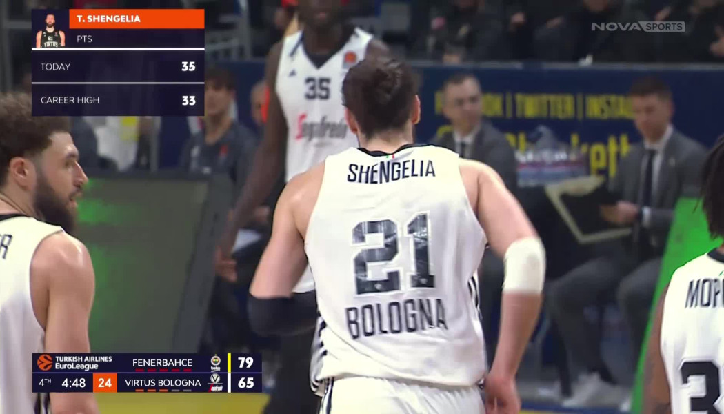 Ο Γεωργιανός φόργουορντ μέτρησε 35 πόντους, 5 ριμπάουντ και 3 ασίστ και έκανε ρεκόρ καριέρας στην Euroleague, αφού το προηγούμενο ήταν στους 33 πόντους.