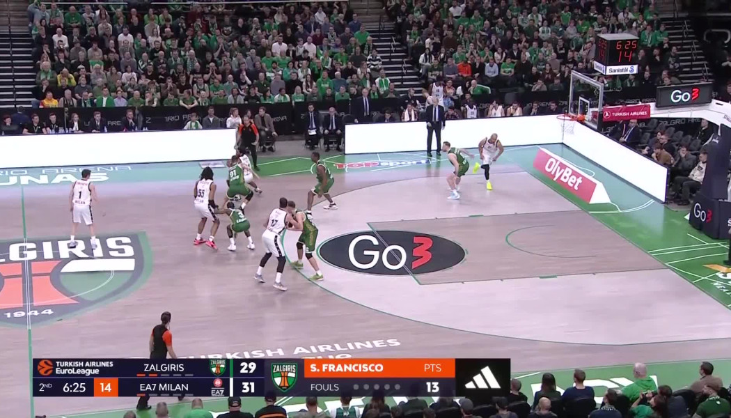 Το εντυπωσιακό ξεκίνημα της Αρμάνι, χάρισε στους φιλοξενούμενους πολύ γρήγορα το προβάδισμα και μία διαφορά που αυξανόταν διαρκώς. Με τον Ζακ Λεντέι να συνεχίζει τις εξαιρετικές του εμφανίσεις και πολλους συμπαίκτες του να προσθέτουν λύσεις, το προβάδισμα έφτασε στη μέγιστη τιμή του +12 (55-67) στο 27΄. Ακριβώς στο σημείο εκείνο η Ζαλγκίρις αφυπνίστηκε, απάντησε με 11-0 (66-67) και τα πάντα ξεκινούσαν ουσιαστικά από μηδενική βάση στο τελευταίο δεκάλεπτο. Έξι λεπτά πριν από το τέλος, οι γηπεδούχοι πέρασαν για πρώτη φορά μπροστά 73-71 με τρίποντο του Φρανσίσκο όμως οι Ιταλοί άντεξαν στην πίεση, προηγήθηκαν 83-77 στο 38΄ και έφτασαν στη νίκη με το τελικό 89-87. Την καλύτερη εμφάνιση της καριέρας του πραγματοποίησε ο Νικολό Μάνιον με ατομικά ρεκόρ σε πόντους (21) και ριμπαόυντ (7), ενώ είχε και 6 ασίστ. Ο ΛεΝτέι πέτυχε 26 με 13/13 βολές και 11 κερδισμένα φάουλ. Από την άλλη πλευρά ο Σιλβέν Φρανσίσκο έκανε ό,τι ήταν δυνατόν με 29π. (5/11 τρίποντα) αλλά δεν ήταν αρκετό.