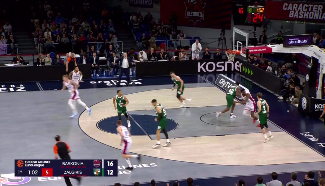Η Ζάλγκιρις που είχε περάσει μπροστά στο σκορ μόνο μία φορά, εξαπέλυσε αντεπίθεση στην τελευταία περίοδο και με καλάθι του Σμάιλαγκιτς 69 δεύτερα πριν από το τέλος, πήρε προβάδισμα ενός πόντου (64-65).