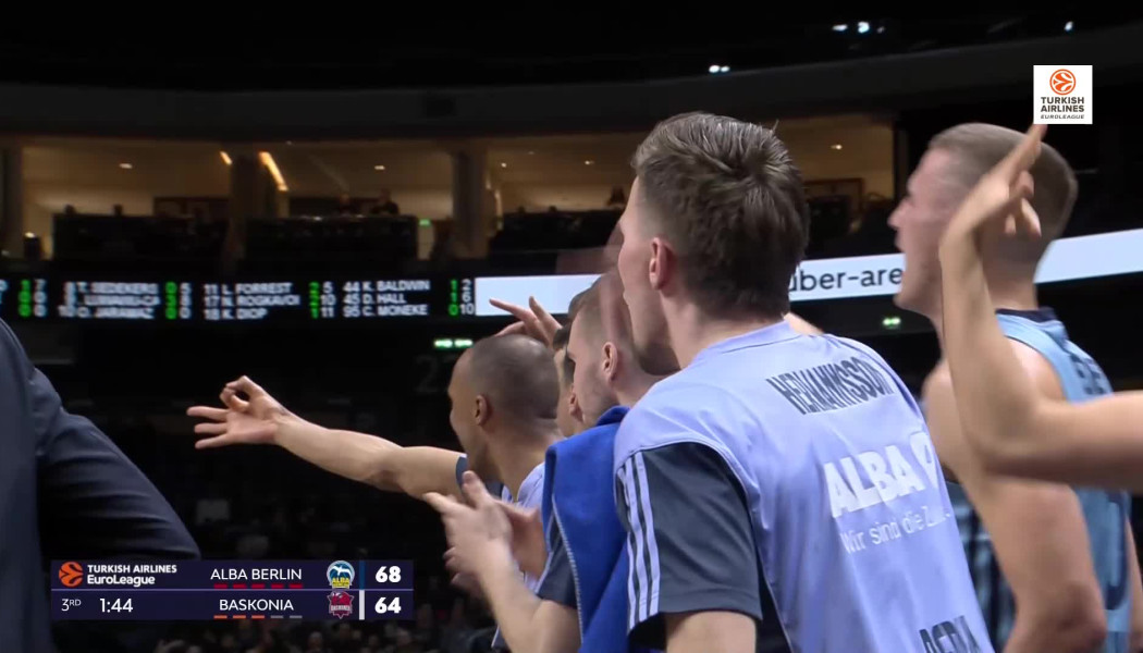 Η Άλμπα Βερολίνου υποδέχτηκε τη Μπασκόνια στο πλαίσιο της 29ης αγωνιστικής της Euroleague και κατάφερε να πάρει τη νίκη με 97-90 με τον Ματ Τόμας να σταματά στοτς 21 πόντους με 5/7 τρίποντα!