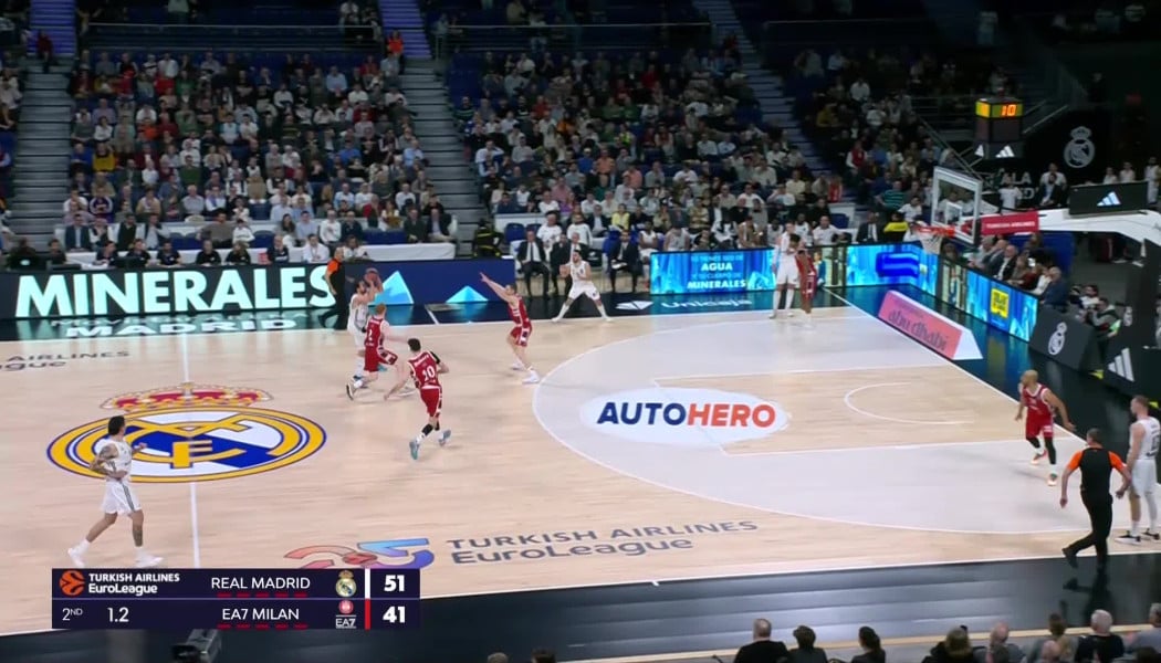 Τι πιο σύνηθες από τον Ισπανό γκαρντ; Τρομερό τρίποντο από τον Γιουλ στη λήξη του ημιχρόνου του Ρεάλ Μαδρίτης-Αρμάνι Μιλάνο.