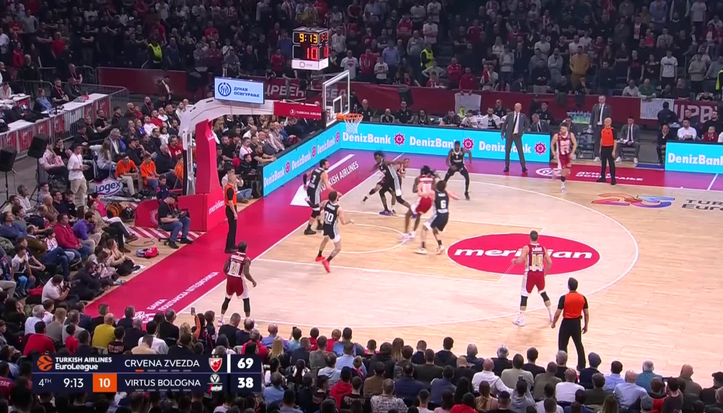 Η φάση της βραδιάς στην αναμέτρηση του Ερυθρού Αστέρα με την Βίρτους Μπολόνια στο Βελιγράδι για την 31η αγωνιστική της Euroleague.