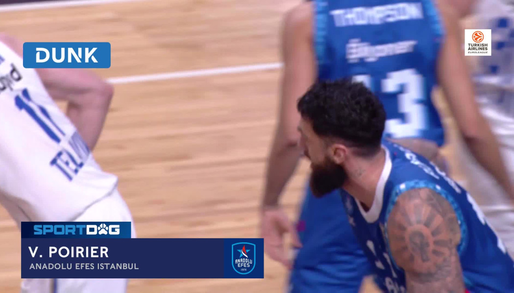 Ο Ντάριους Τόμπσον βρήκε με alley oop πάσα τον Γάλλο σέντερ και αυτός κάρφωσε με άνεση στο καλάθι των Ισραηλινών.