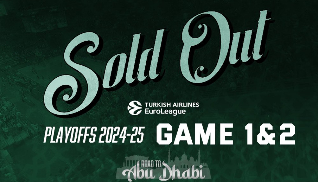Όπως έγινε κι επίσημα γνωστό από την "πράσινη" ΚΑΕ, για τα δύο πρώτα ματς στον δρόμο για το Final Four έχει γίνει ήδη sold out, με το Τριφύλλι να φτάνει πλέον συνολικά τα 12 στη φετινή σεζόν, αφού ήδη από τις αρχές Μαρτίου έχουν... εξαφανιστεί και τα εισιτήρια για την αναμέτρηση της τελευταίας αγωνιστικής της κανονικής περιόδου κόντρα στον Ερυθρό Αστέρα (11/4, 21:15).