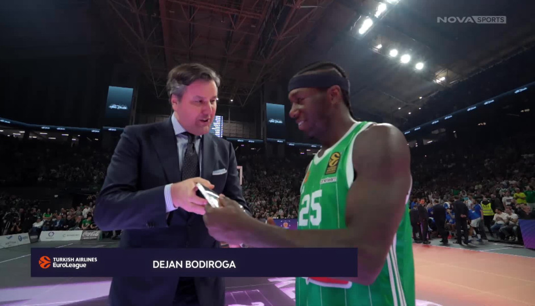 Παναθηναϊκός - Εφές: Ο Κέντρικ Ναν βραβεύτηκε από τον πρόεδρο της Euroleague, Ντέγιαν Μποντιρόγκα, πριν από την εκκίνηση του ματς και το ΟΑΚΑ αποθέωσε τον Αμερικανό παικταρά.