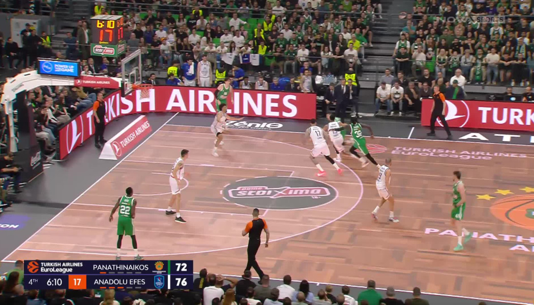 Ο αρχηγός του Παναθηναϊκού, Κώστας Σλούκας πέτυχε ένα εντυπωσιακό καλάθι.