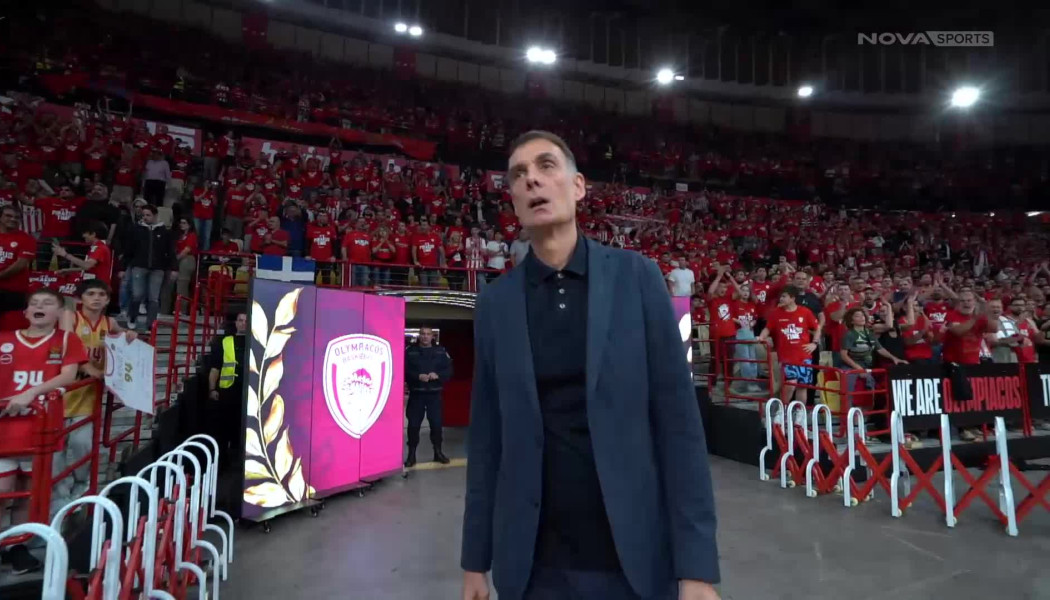 Ο προπονητής του Ολυμπιακού βγήκε στο παρκέ πριν την αναμέτρηση με τη Ρεάλ Μαδρίτης και γνώρισε καθολική αποθέωση από τους φιλάθλους!
