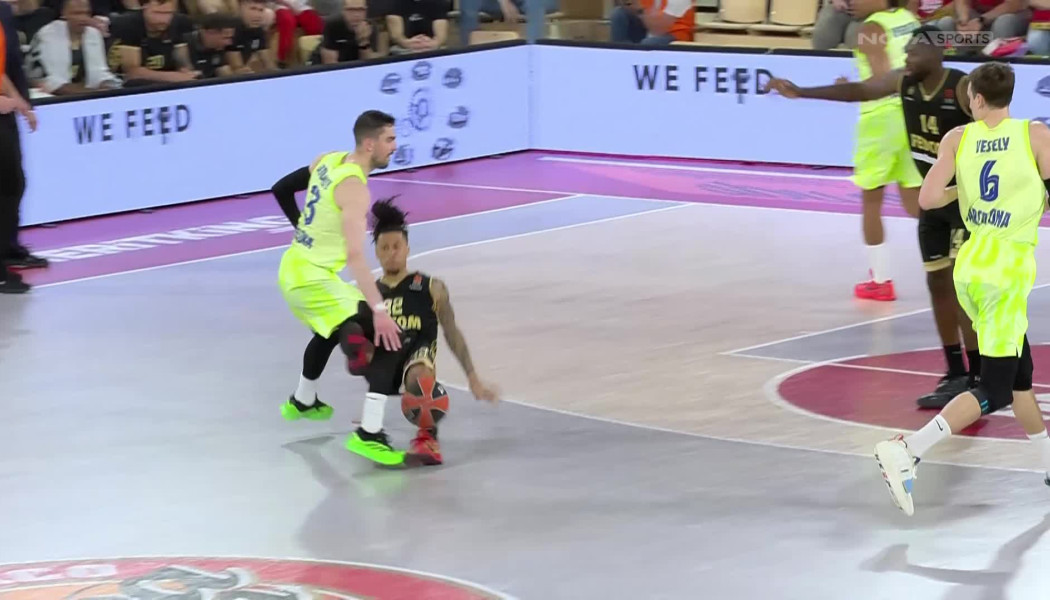Με το σκορ στο 80-61 πήγε με τον αγκώνα και έσπρωξε τον Γάλλο γκαρντ τελείως επίτηδες. Ο Μάικ Τζέιμς νευρίασε και τον έσπρωξε από πίσω. Δείτε τι έγινε...