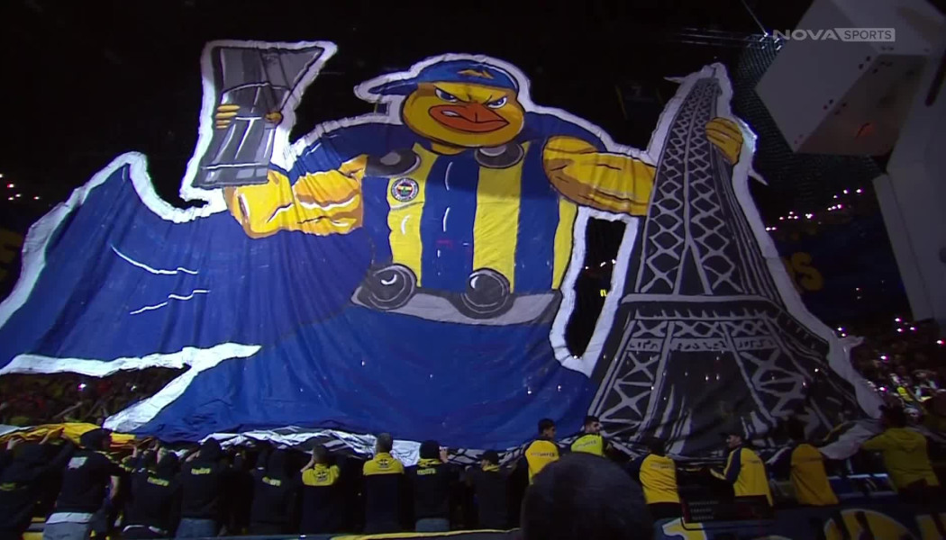 Συγκεκριμένα οι οπαδοί της Φενέρμπαχτσε σήκωσαν ένα κορεό, το οποίο απεικονίζει τη μασκότ της ομάδας να «πατά» τον Πύργο του Άιφελ.