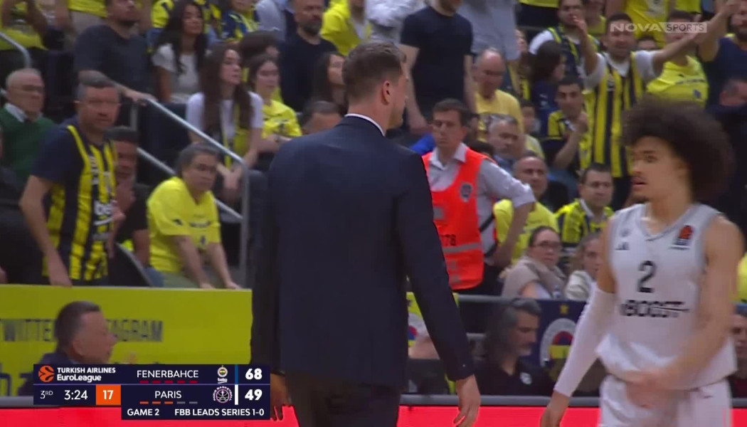 Ο Τιαγκό Σπλίτερ δέχθηκε τεχνική ποινή από τους διαιτητές, ο προπονητής της Παρί μπήκε στο παρκέ και σταμάτησε τον διαιτητή και τον ΜακΚόλουμ.