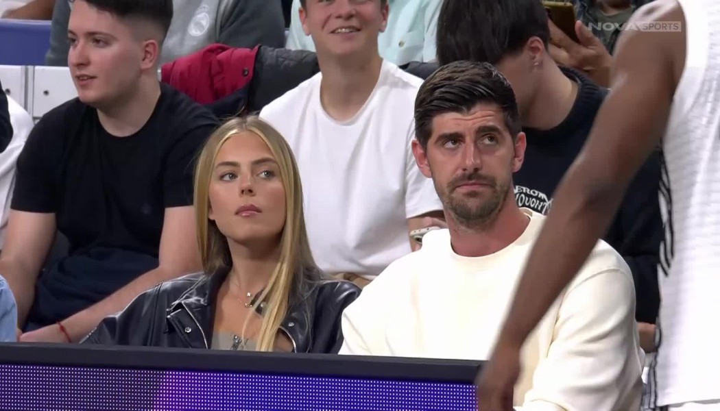 Ρεάλ Μαδρίτης - Ολυμπιακός: Το Game 4 παρακολουθεί και ο Τιμπό Κουρτουά, με τον κίπερ της ποδοσφαιρικής ομάδας της "Βασίλισσας" να βρίσκεται δίπλα στο παρκέ.
