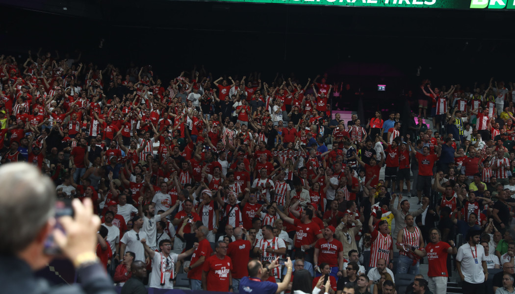Οι φίλοι των Πειραιωτών φώναξαν συνθήματα και ζεσταίνονται για τη δική τους αναμέτρηση απέναντι στη Μονακό του Βασίλη Σπανούλη, η οποία θα ξεκινήσει στις 21:00.