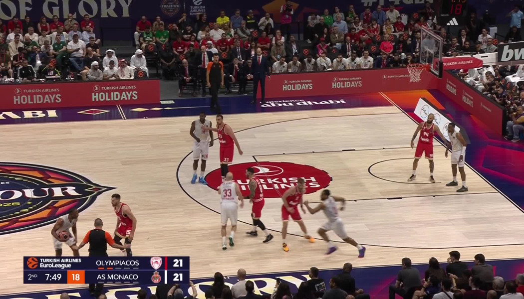Φανταστική αμυντική ενέργεια του Τόμας Γουόκαπ με θύμα τον Μάικ Τζέιμς και εύκολο καλάθι για τον Ολυμπιακό στον αιφνιδιασμό