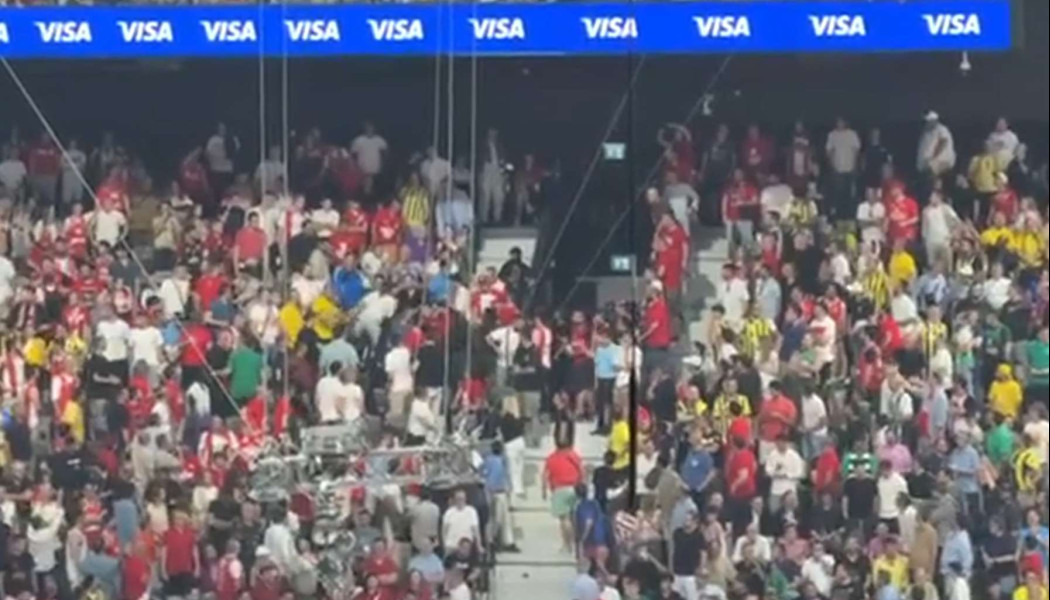 Παρότι οι οπαδοί του Ολυμπιακού έστησαν πάρτι στην εξέδρα και έκαναν αισθητή την παρουσία τους στην αναμέτρηση, κάποια στιγμή προκλήθηκε ένταση με τους Τούρκους οπαδούς.