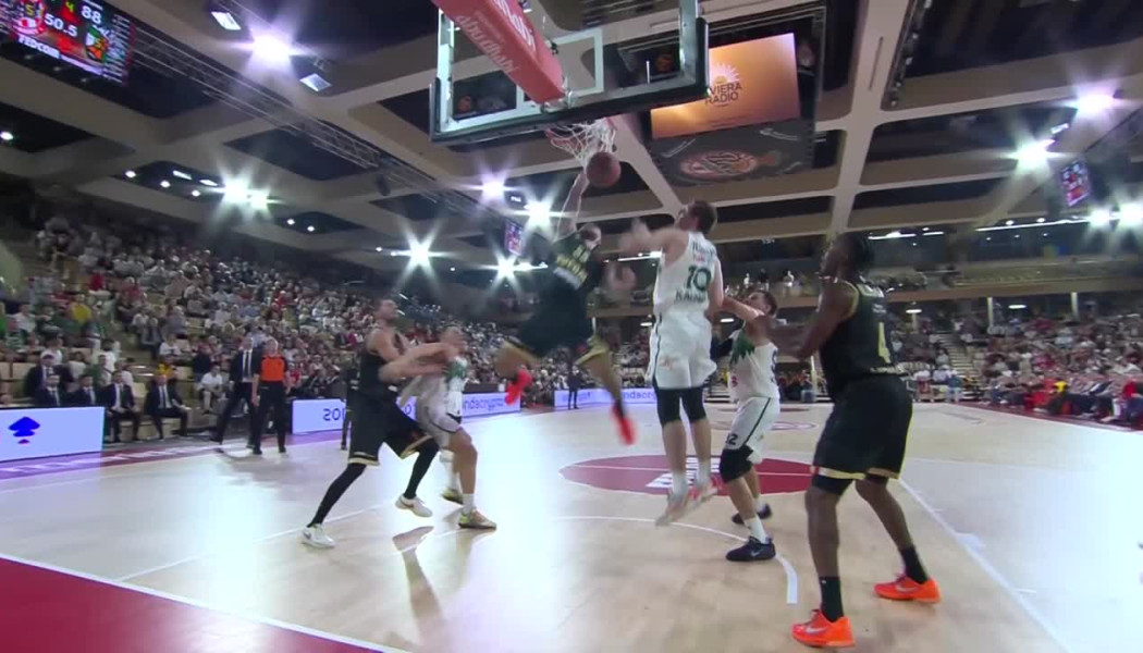 Ο Αμερικανός γκαρντ του Βασίλη Σπανούλη κάρφωσε επιβλητικά στο καλάθι των Λιθουανών, σε μια φάση που δεν τον έχουν συνηθίσει.