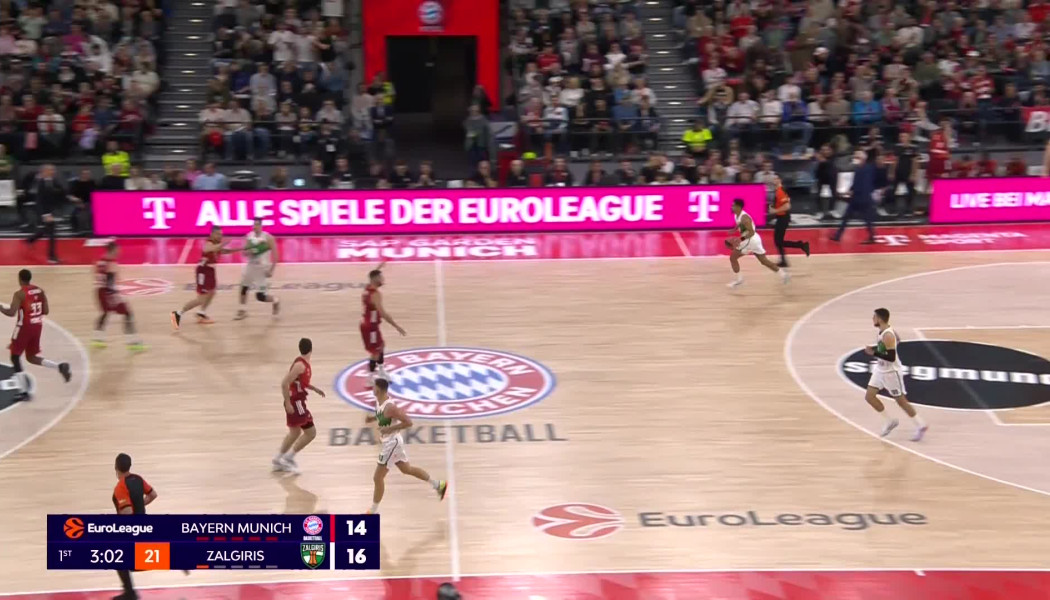 Η Ζαλγκίρις είναι μία από τις «καυτές» ομάδες στην εκκίνηση της διοργάνωσης και φρόντισε να το δείξει από το πρώτο λεπτό απόψε στο Μόναχο. Πήρε το προβάδισμα και οικοδόμησε διαφορά η οποία εκτοξεύτηκε στους 21 πόντους (43-64 στο 26΄). Φιλότιμη η προσπάθεια της Μπάγερν που μείωσε γρήγορα στους 11 (57-68 στο 30΄) όμως το ματς είχε πάρει το δρόμο του.