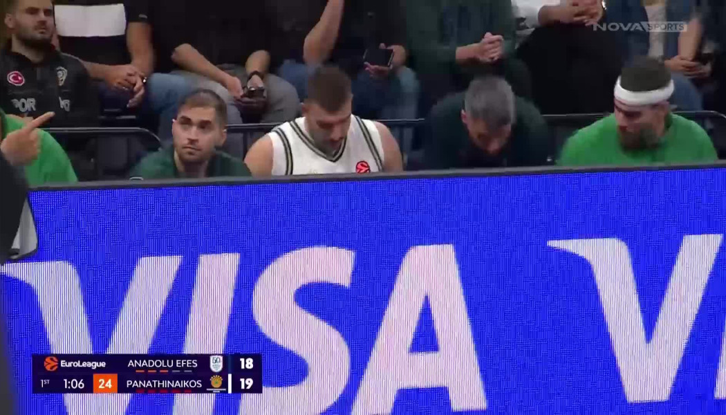 Ο Έλληνας σηκώθηκε για να περάσει αλλαγή λίγο πριν το τέλος του πρώτου ημιχρόνου, ωστόσο δεν πάτησε ποτέ στο παρκέ γιατί φορούσε το σορτσάκι προπόνησης, το οποίο είχε διαφορετική απόχρωση από την επίσημη εμφάνιση της ομάδας.